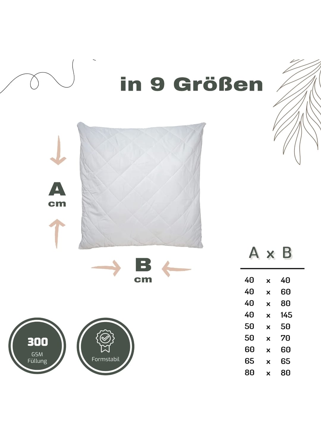 Entdecken Sie die Vielfalt von Livessa Kopfkissen! Mit 9 verschiedenen Größen zur Auswahl, darunter Seitenschläferkissen 40×145, 80×80, 40×40, 50×50, 60×60, 40×60, 65×65, 50×70 und 40×80, finden Sie garantiert die perfekte Passform für Ihren Bedarf.